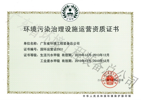 环境污染治理设施运营资质证书1 发布时间: 2017-07-18 14:36:13 发布网站: 中国设备招标网